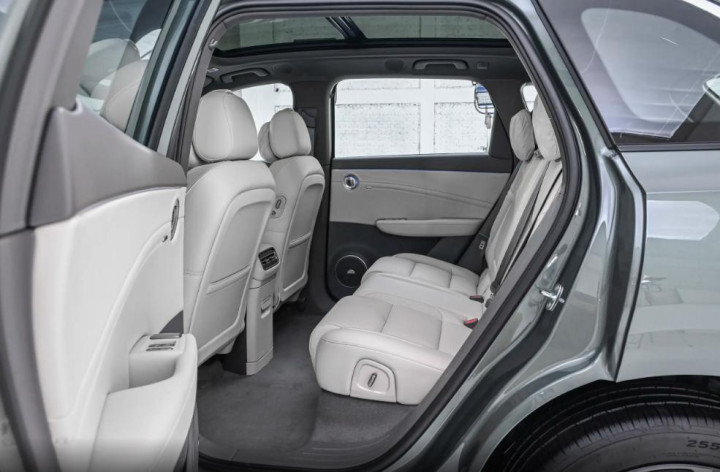 进入车内,其核心无疑是以“大五座”为核心的布局思路。官方宣称其“空间得房率”较高,目的是通过舍弃不常用的第三排座椅,为第二排乘客换取宽敞舒适的空间体验。对于主流的三口或四口之家而言,这种设计在日常使用中具备不错的实用性。从乘坐体验来说,身高178厘米的乘客,在其第二排依旧能够得到比较宽裕的乘坐体验,腿部空间可以达到两拳出头,头部空间约为一拳。另外,这款车型标配“女王座驾”,前排通风、加热、记忆和按摩功能都是全系标配,中高配版本车型额外搭载后排加热、通风功能,进一步优化了乘客的舒适性体验。